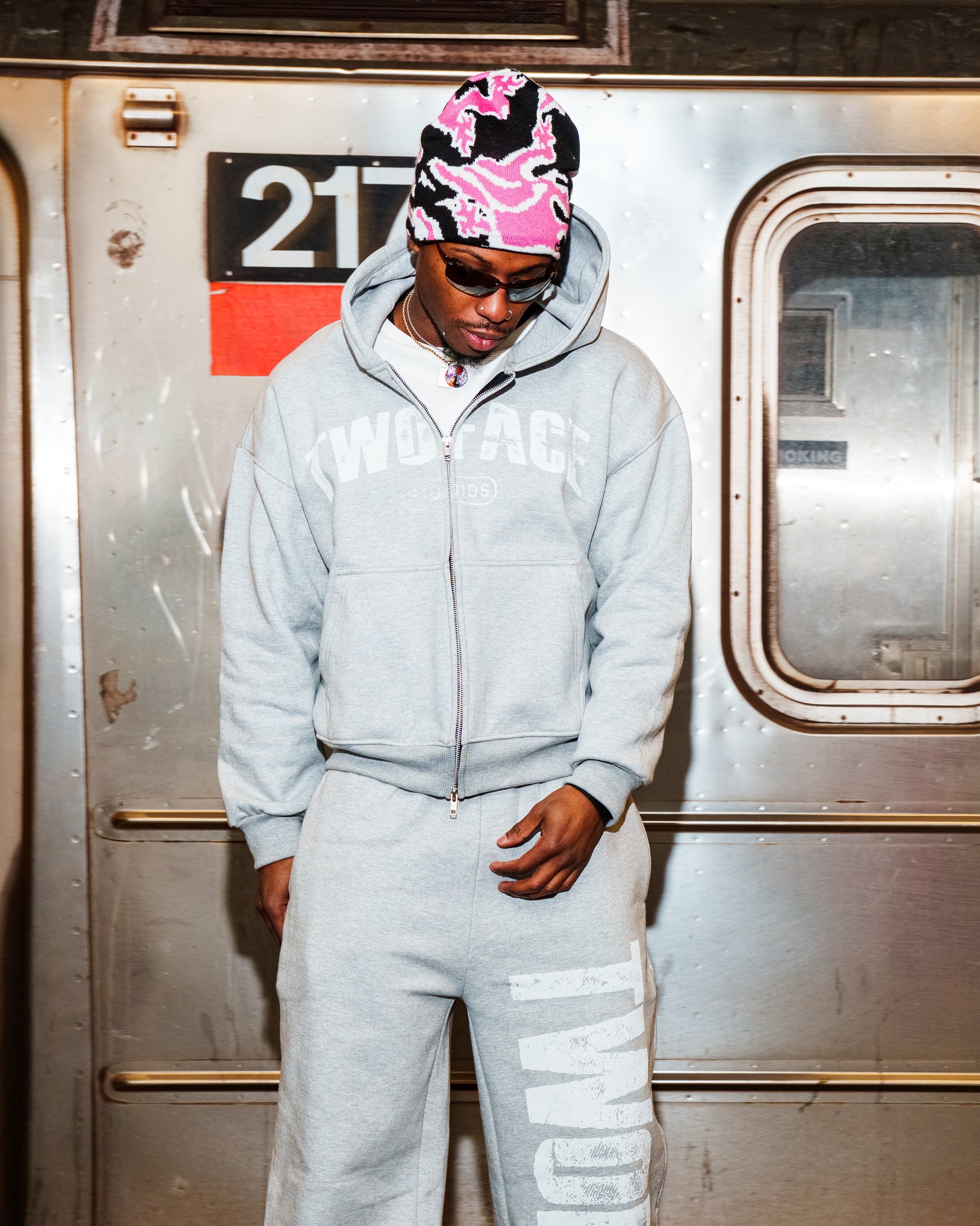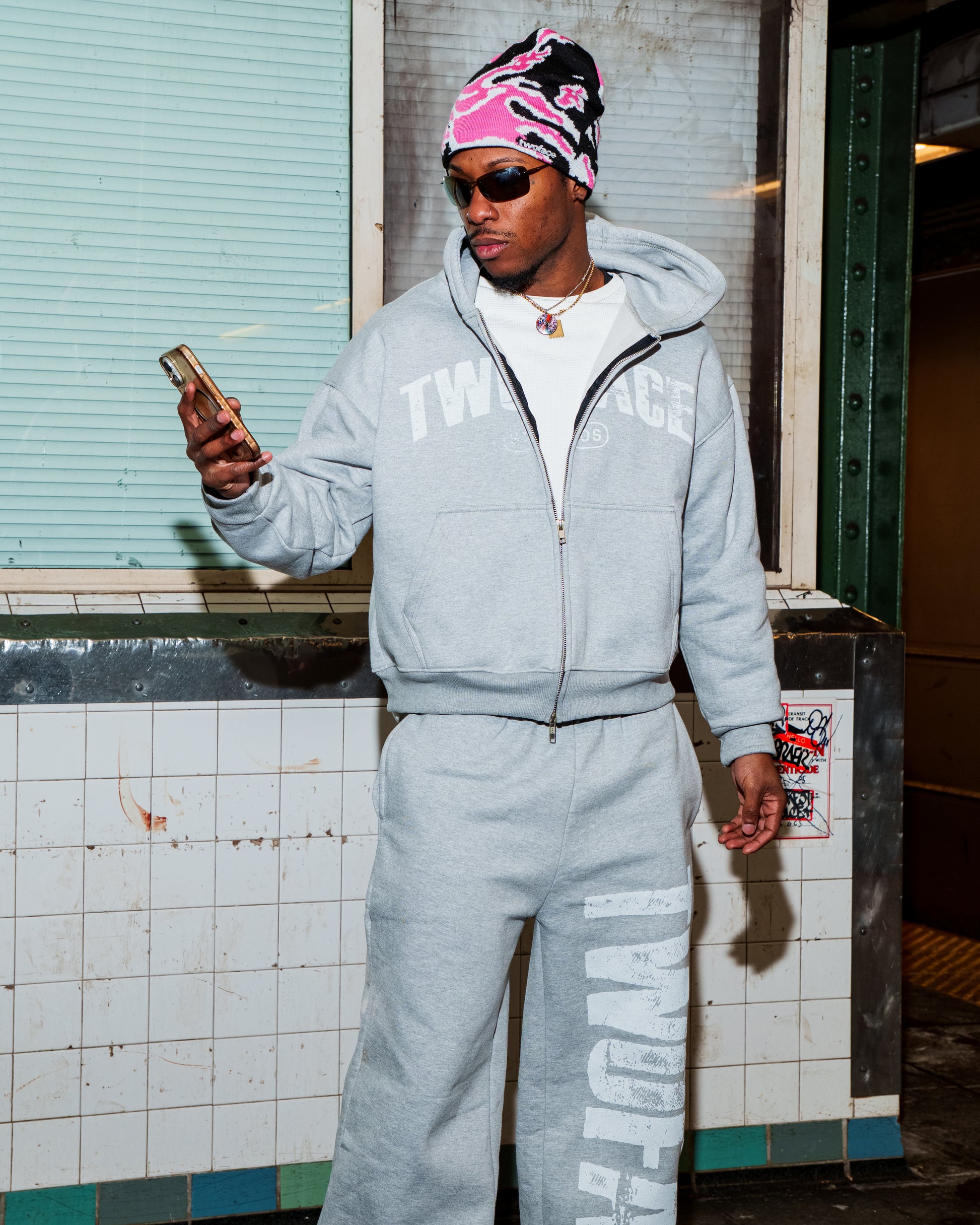 Twin Flame Pink & Gray Beanie